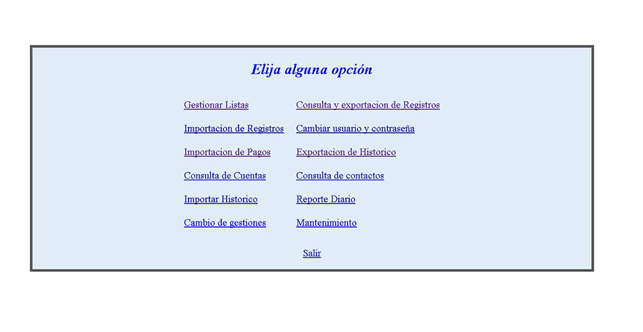 Software para la administración y gestión de clientes. Hemos realizado sistemas de gestión y administración de cobranza para Telmex, Inbursa, Adsa, Invex, Natura, Jafra entre otros.